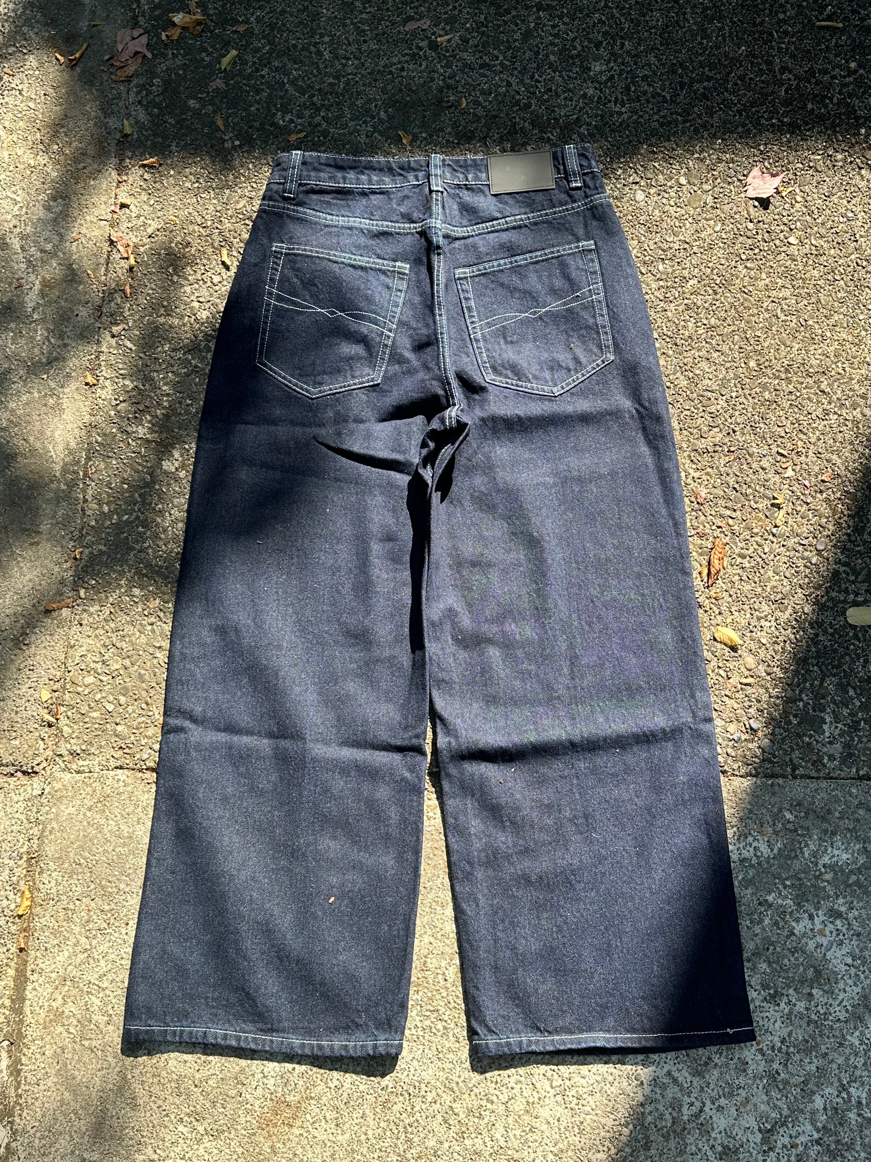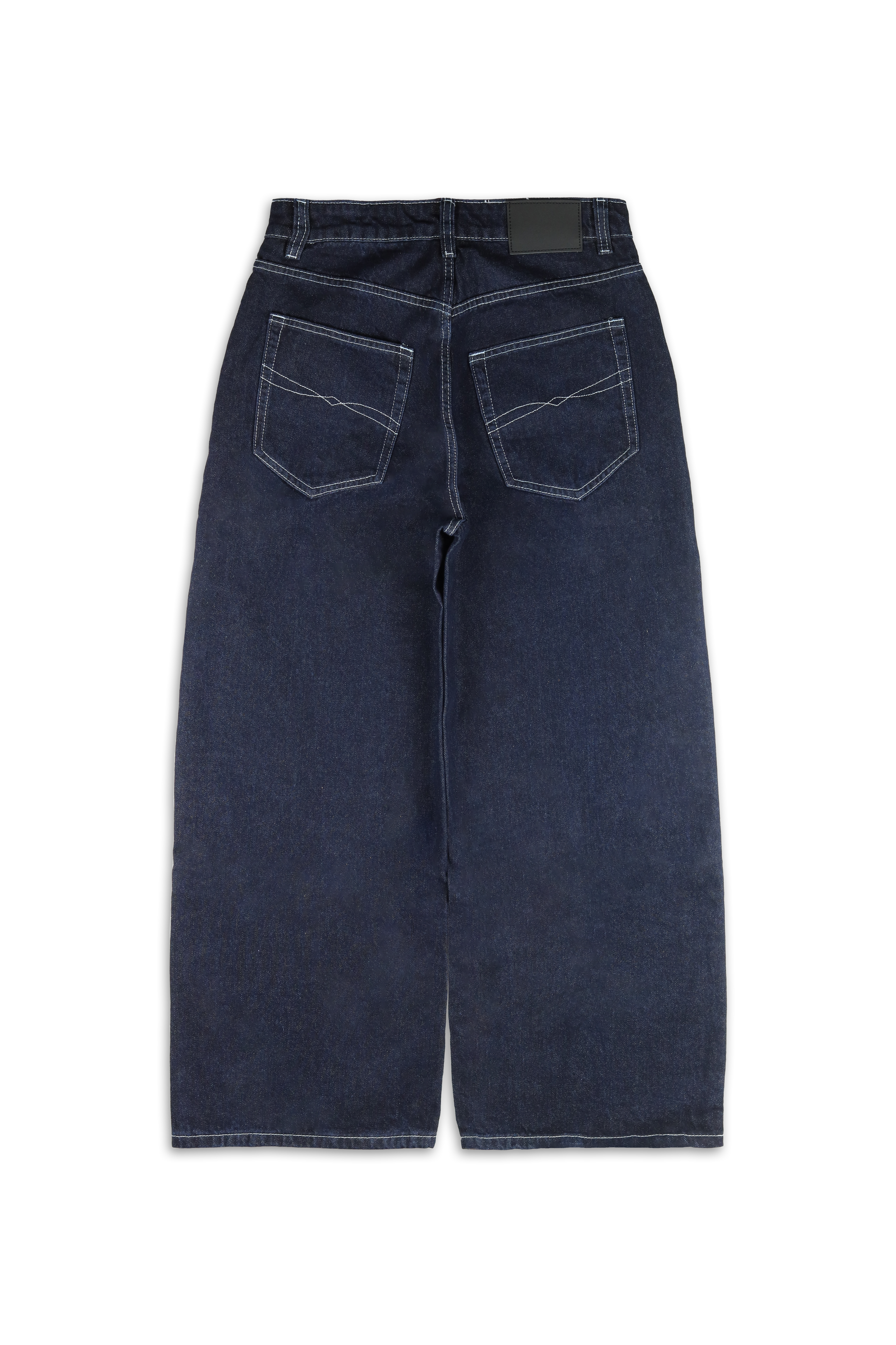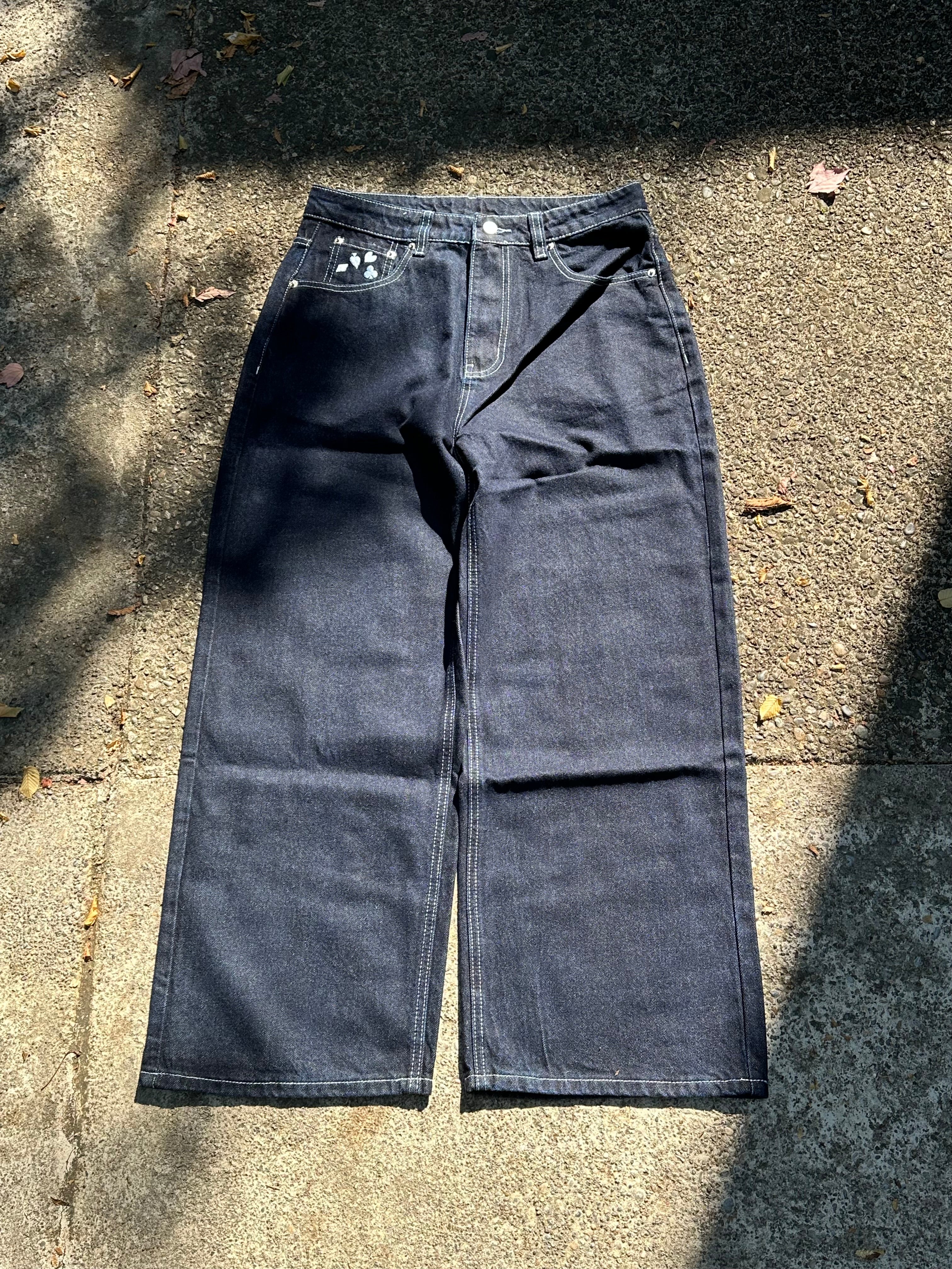 Suits jeans feature a relaxed, baggy fit with a low waist, wide leg, and long length. Made from 100% rigid cotton denim, they offer timeless durability. With a classic five-pocket design, reinforced rivets, and a sturdy copper zipper fly, they’re built to evolve with wear. A matte black leather patch on the waistband adds a bold finishing touch.